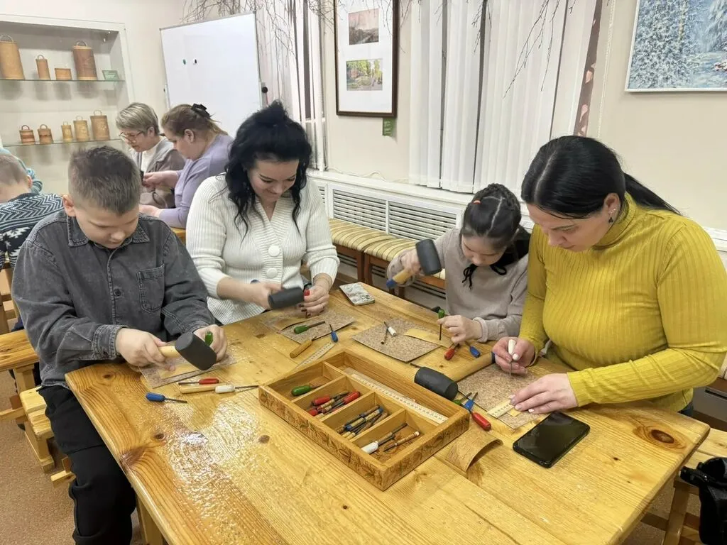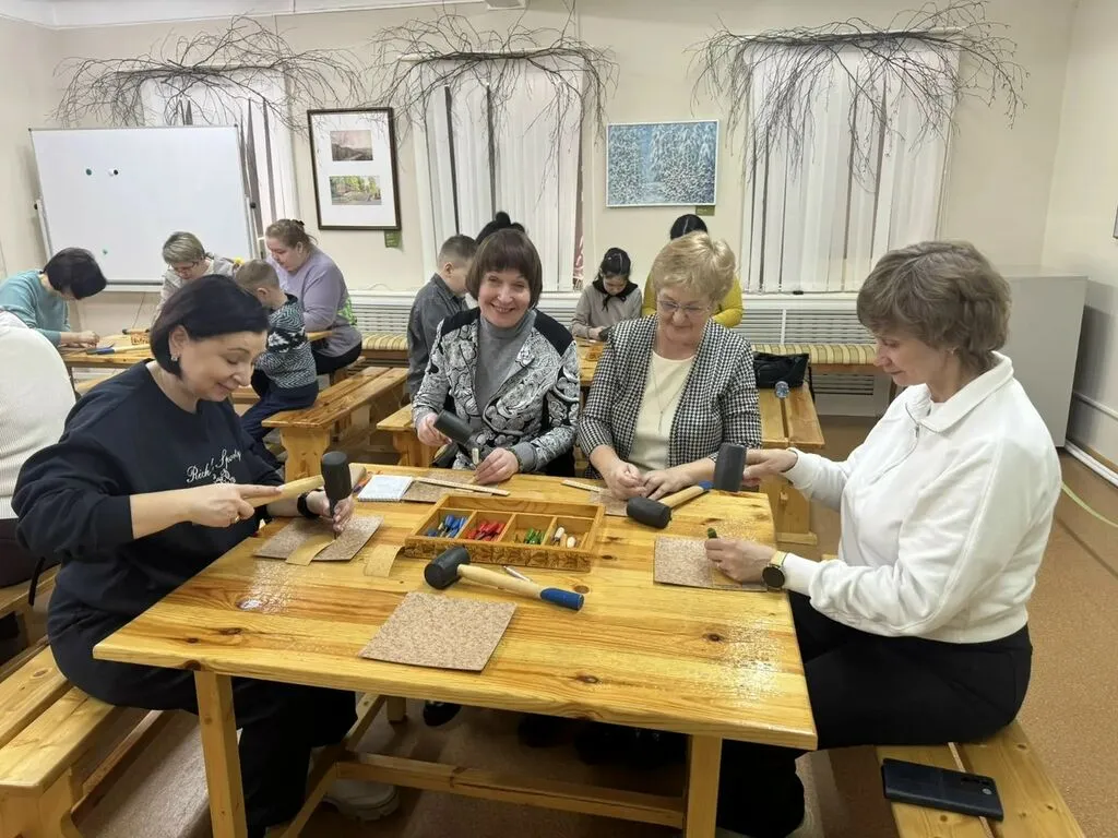 Попробовали себя в старинном ремесле — делали узоры на бересте;