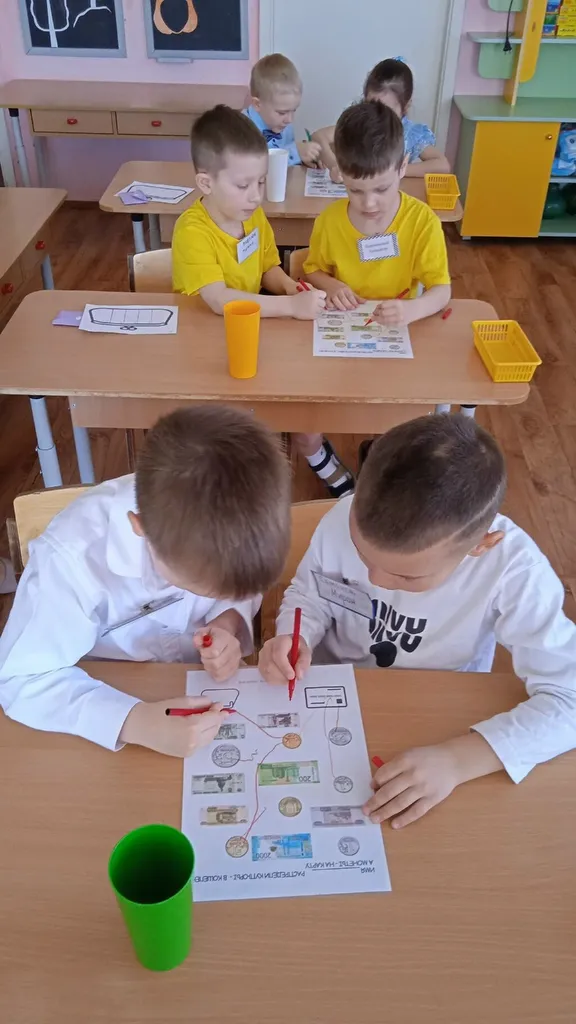 Ребята работали в парах, считали деньги, распределяли их по кошелькам и даже меняли валюту.